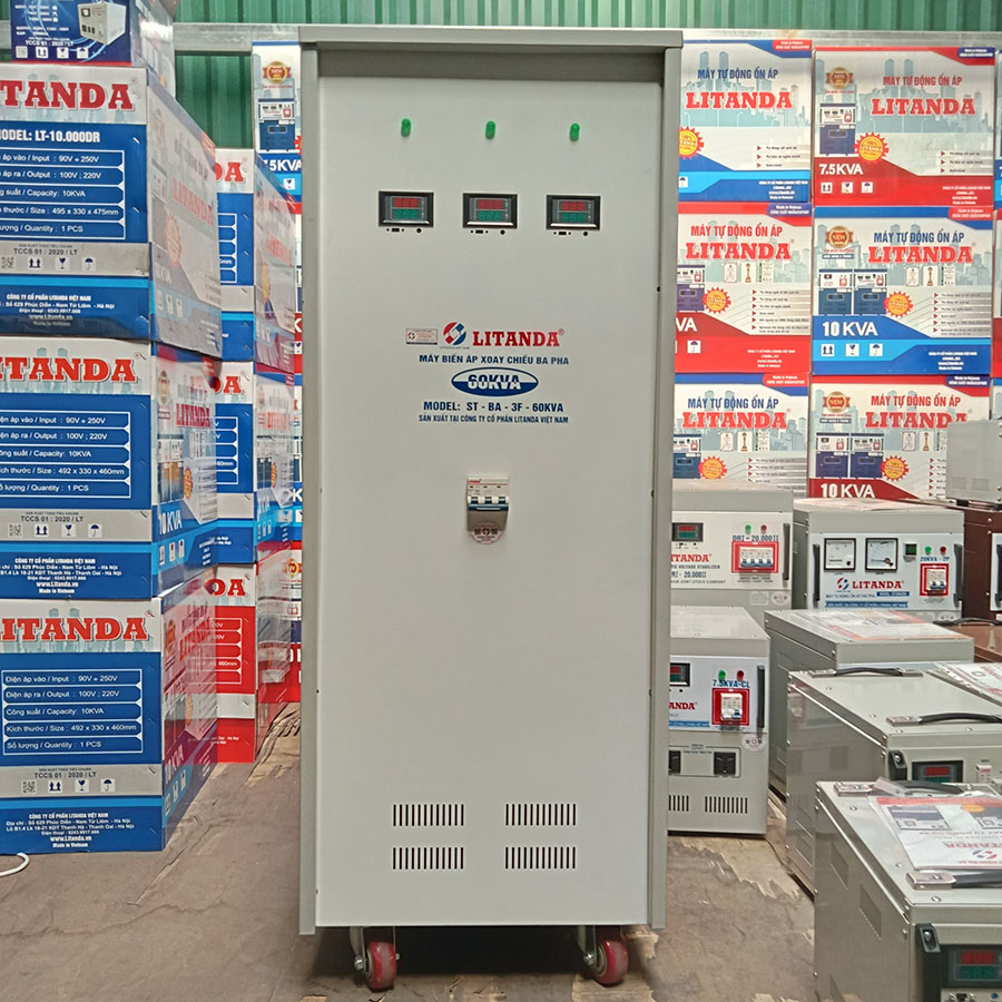 The Litanda 3-phase 60KVA transformer has only the power switch function, and has no voltage stabilization feature. Therefore, we recommend that customers who want to use equipment with integrated power conversion and voltage stabilizer, use a 3-phase Litanda voltage stabilizer, with the price difference is not much compared to the transformer, in the when much more optimized.