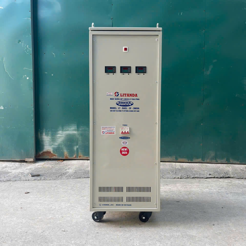 Máy biến áp cách ly Litanda 30KVA 3 pha của công ty cổ phần Litanda Việt Nam sản xuất bằng 100% dây đồng, bảo hành 4 năm, miễn phí vận chuyển,… Sản phẩm được nhiều cơ quan, công ty, doanh nghiệp, xưởng sản xuất ưa chuộng tin dùng.