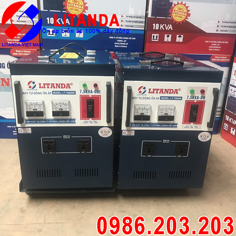 Máy ổn áp Litanda 7.5KVA dải 90v chính hãng của Công ty cổ phần Litanda Việt Nam sản xuất 100% dây đồng nguyên chất, bảo hành 4 năm. Máy chạy êm, tốn ít điện, bảo vệ an toàn cho tất cả các thiết bị điện trong gia đình bạn.