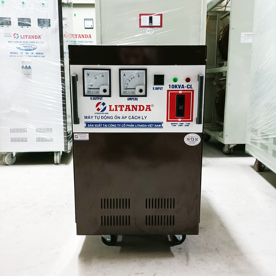 Chúng tôi tự hào là đơn vị cung cấp Ổn áp cách ly, biến áp cách ly Litanda chính hãng chất lượng cao! Giá ổn áp cách ly 10KVA 1 pha Litanda hiện tại là 18tr500 chưa bao gồm VAT và phí vận chuyển.