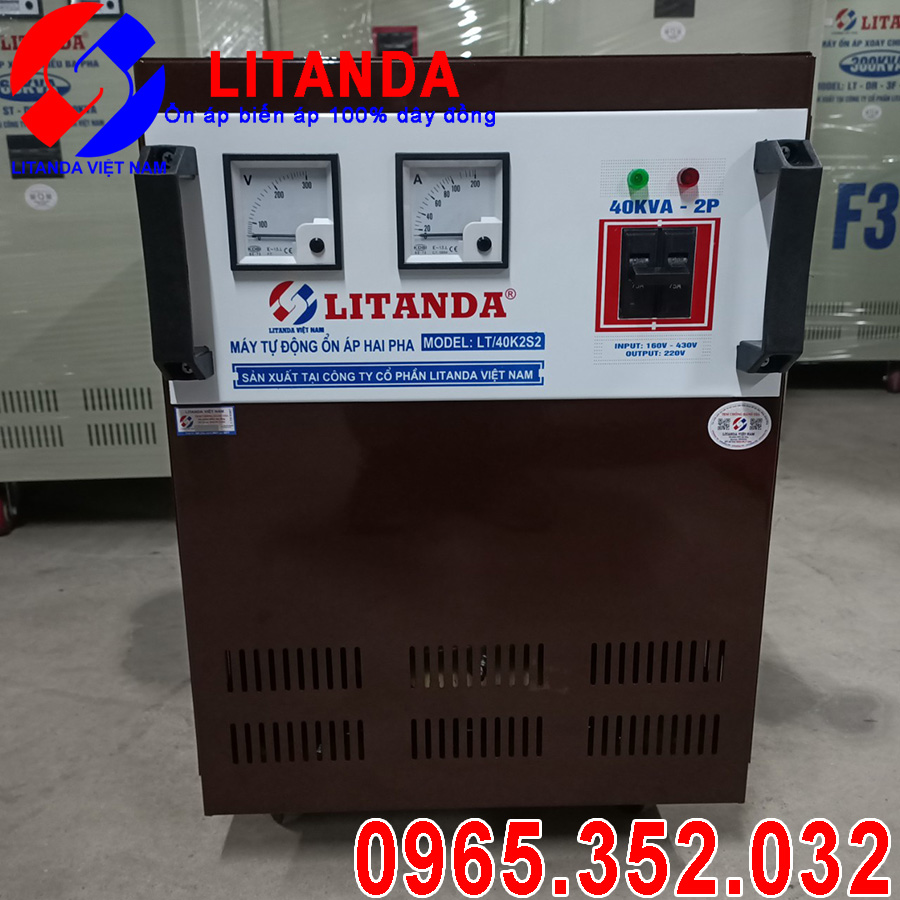 Ổn áp Litanda 40kva 2 pha lửa chính hãng dây đồng 100% do công ty cổ phần Litanda Việt Nam nghiên cứu sản xuất và phân phối. Chúng tôi có kinh nghiệm trên 12 năm trong sản xuất, chăm sóc khách hàng. Sản phẩm bảo hành 4 năm, vận chuyển miễn phí.